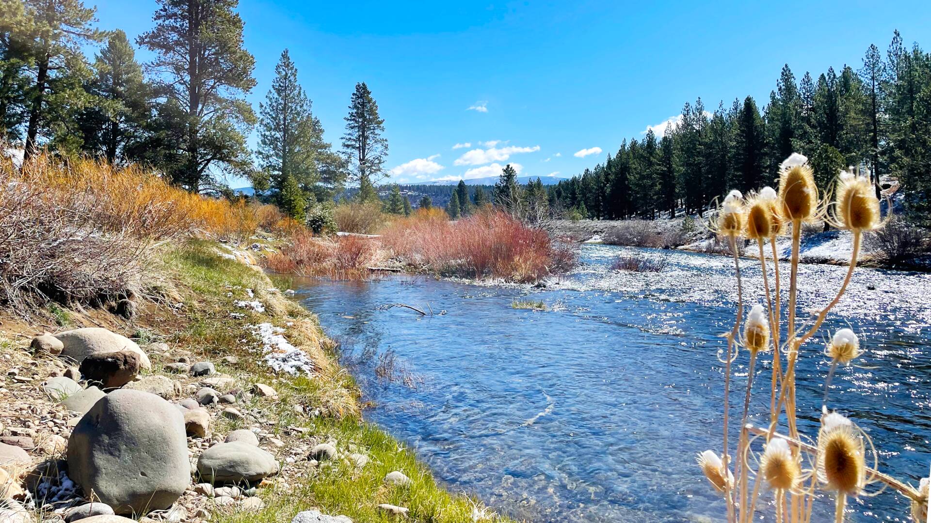 Take a relaxing tour along the banks of the Truckee River in California. Start on the railroad tracks, then head to the riverbank after a while and immerse yourself in nature. Despite the vestiges of snow in sight, expect plenty of greenery, birds and the calming sound of flowing water.